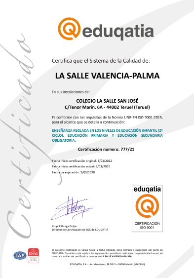 En La Salle Teruel, como parte del Sector La Salle Valencia-Palma, apostamos firmemente por la excelencia en la gestión educativa.