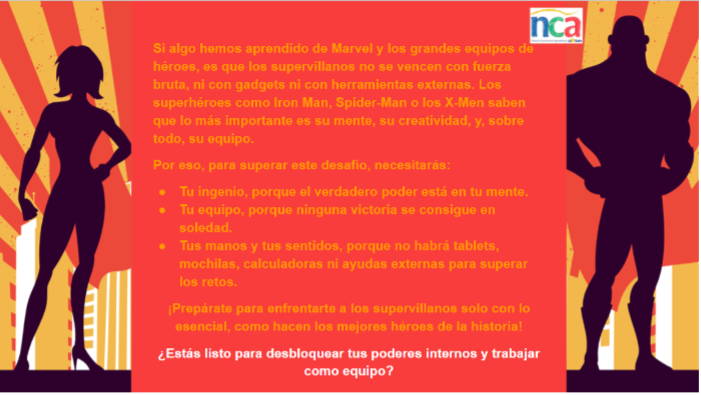 Convertidos en superhéroes, los estudiantes tuvieron que superar diferentes retos relacionados con los contenidos de las asignaturas. Cada prueba superada les permitía conseguir piezas de un puzle que, una vez completado, daba acceso a las preguntas de los exámenes finales. Para avanzar, todos los miembros del equipo debían demostrar un buen dominio de los contenidos, fomentando así la cooperación, el esfuerzo compartido y la responsabilidad individual.